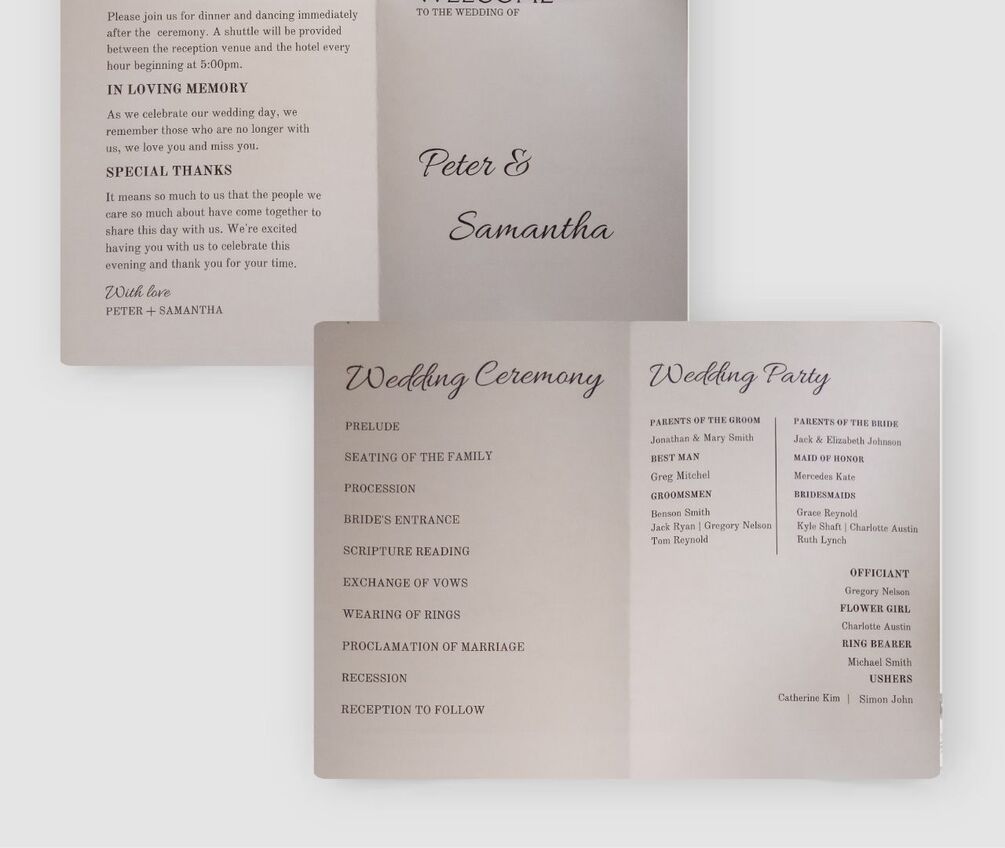 Wedding program template 8.5 x 11" before folding Wedding program template A4 247 x 210 mm before folding