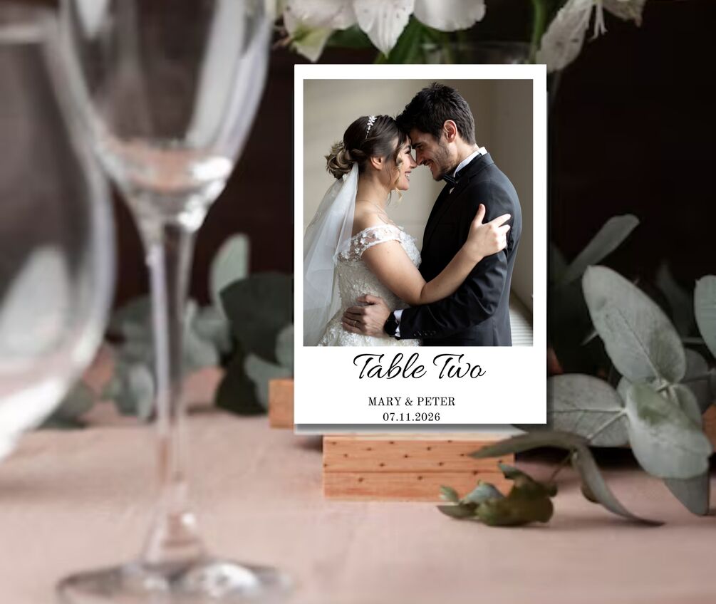 Photo Table Number Card Template, Minimalist Simple Clean Wedding Table Number, Editable, instant download, Canva, DIY