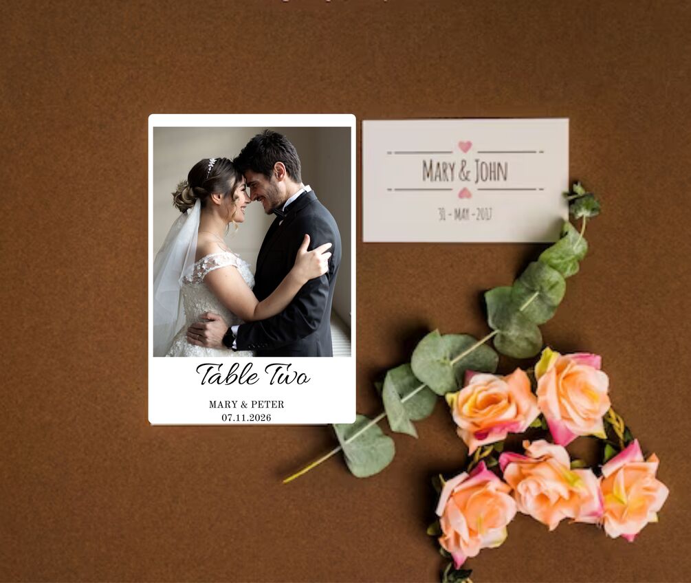 This table number card template features a clean black and white minimalist design with accents of modern calligraphy and is perfect engraved with a photo of you and your future partner. After you place your order, you will receive an email with the access link to your self-editable template where you will be able to customize all your own details on canva. Canva is an online photo editor that allows you to completely personalize your printable directly in your browser. There is no need to download any fonts or software.