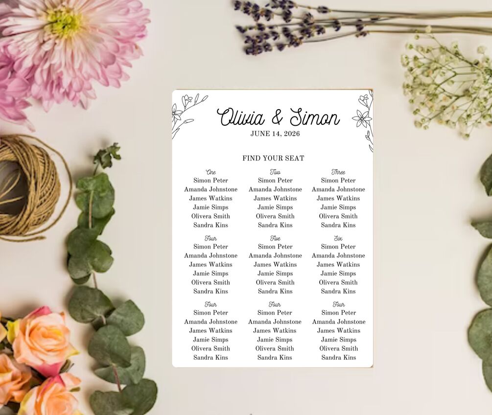 Seating Chart Template, Editable Seating Chart, Printable Seating Plan, Editable Template , Wedding Poster, You Print, Canva