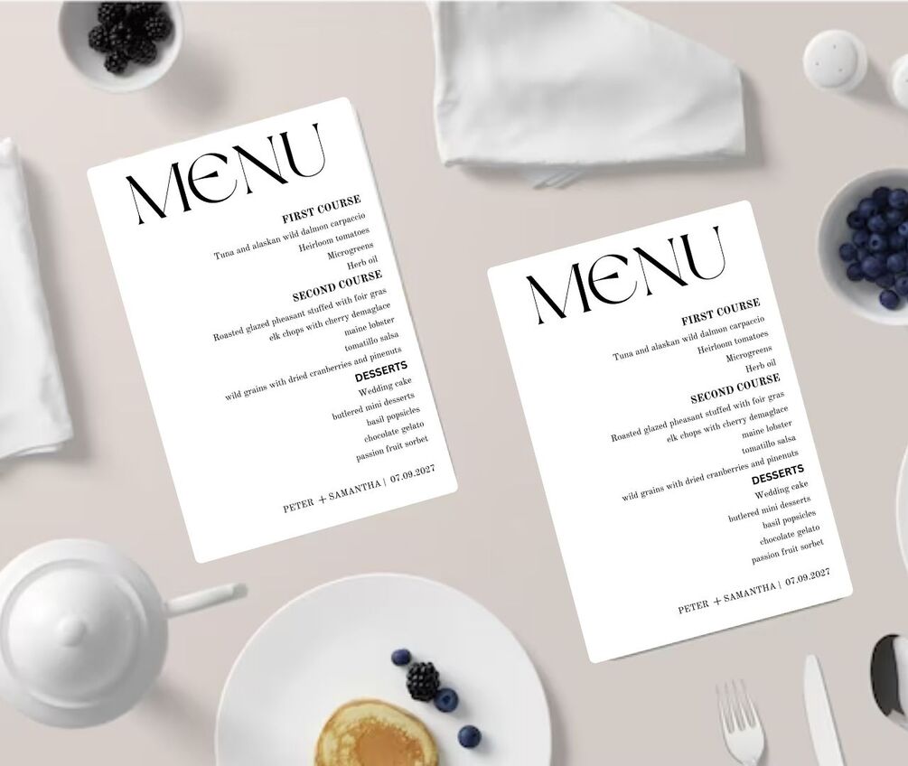 Menu template 5 x 7" Menu template 8 x 10"
